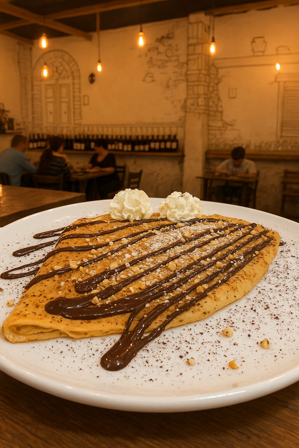 Crepes Morbida e Gustosa alla Nutella viene Servita e Decorata nel Piatto con le Posate