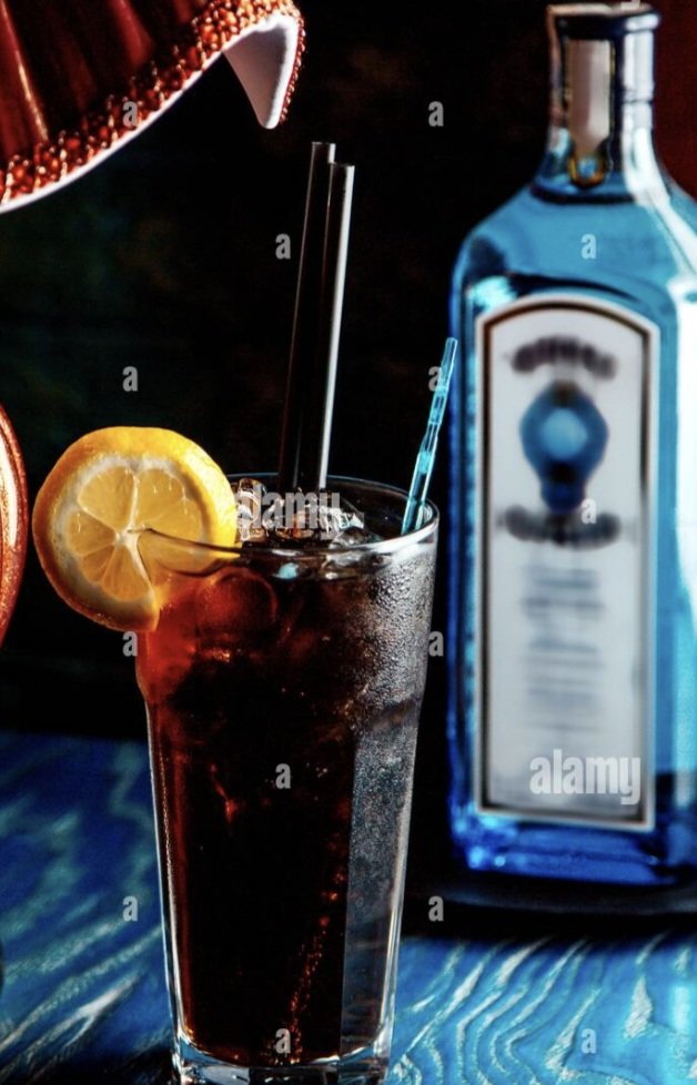 cocktail composto con cubetti di ghiaccio Coca cola ghiacciata e GIN Bombay