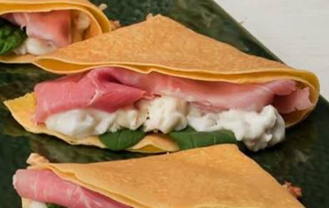Crepes Salata croccante con Prosciutto Cotto Rovagnati ,Galbanino, Insalata e Maionese