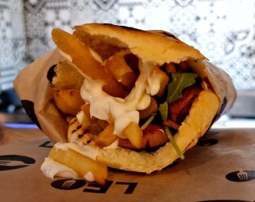 Panino Classico Tostato con Salsiccia Piccante Calabra ,Galbanino , Rucola Patatine fritte , keciap e Maionese
